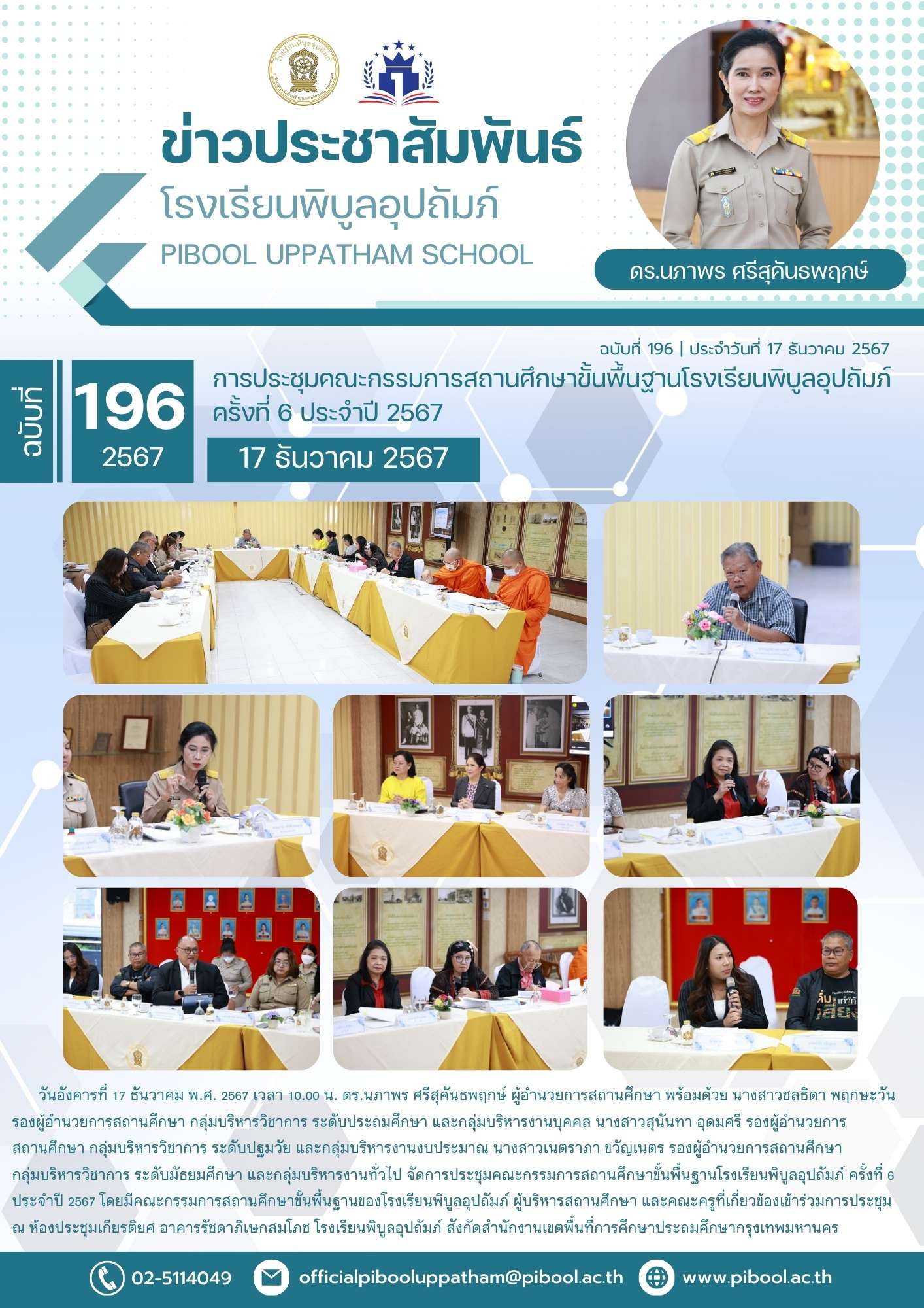 ข่าวประชาสัมพันธ์ ฉบับที่ 196/2567 การประชุมคณะกรรมการสถานศึกษาขั้นพื้นฐานโรงเรียนพิบูลอุปถัมภ์ ครั้งที่ 6 ประจำปี 2567