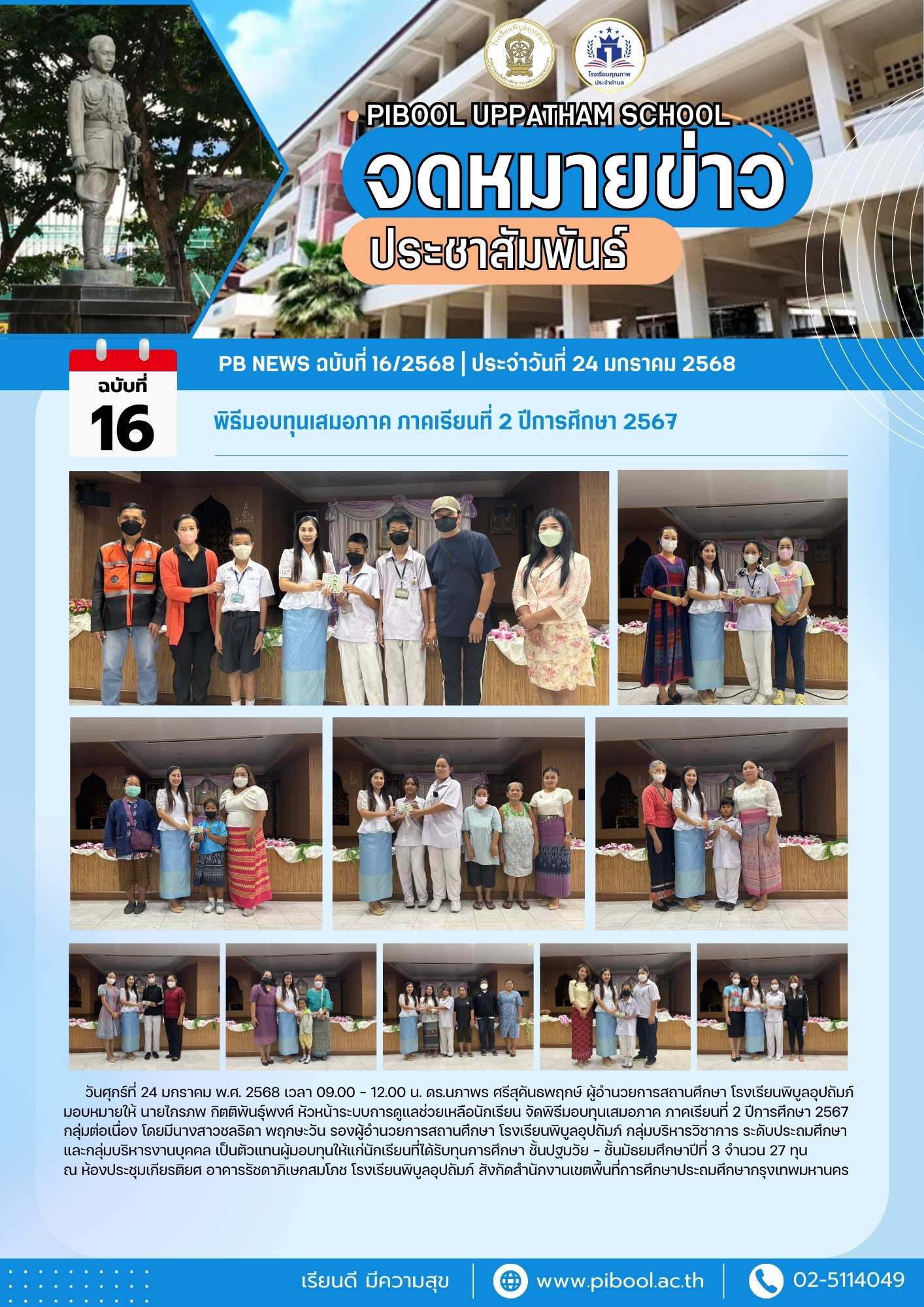 ข่าวประชาสัมพันธ์ ฉบับที่ 16/2568 พิธีมอบทุนเสมอภาค ภาคเรียนที่ 2 ปีการศึกษา 2567