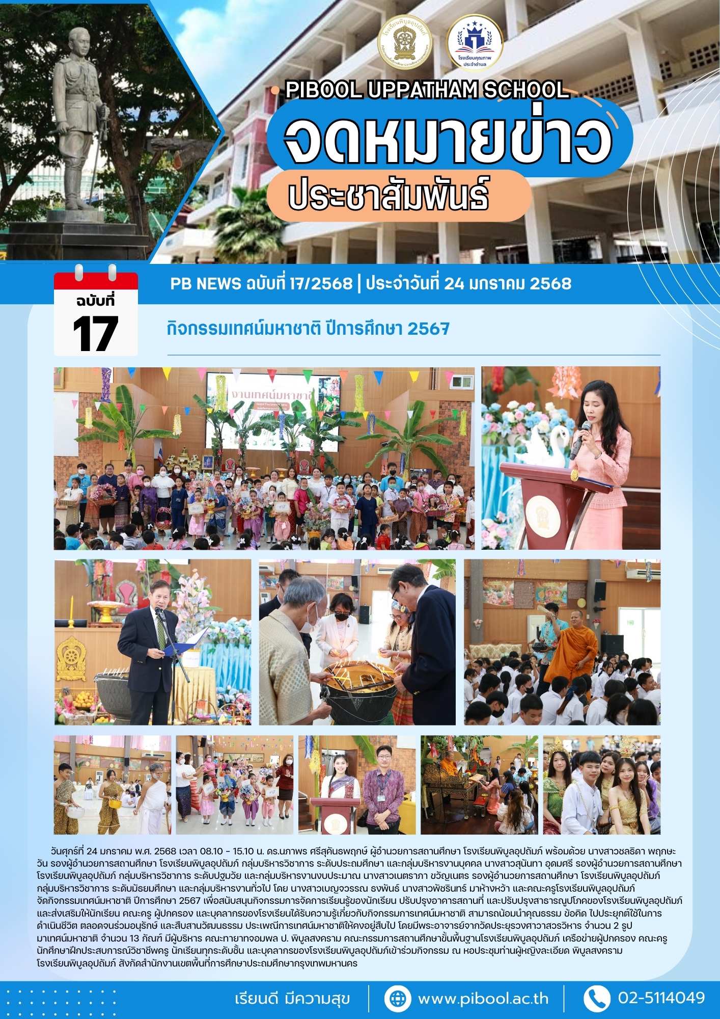 ข่าวประชาสัมพันธ์ ฉบับที่ 17/2568 กิจกรรมเทศน์มหาชาติ ปีการศึกษา 2567
