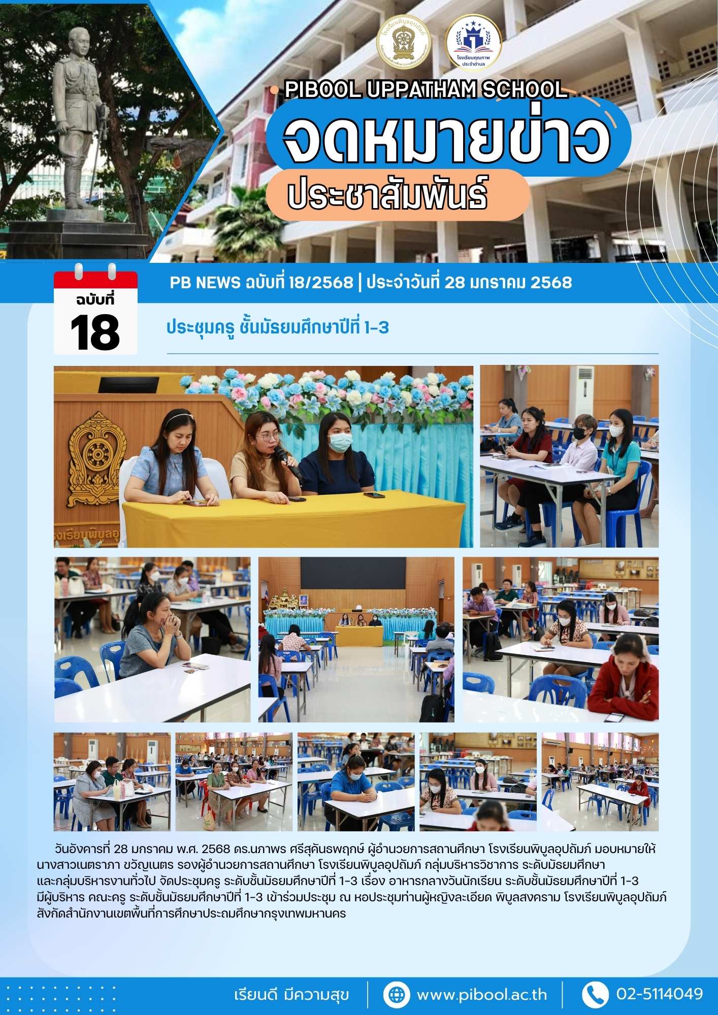 ข่าวประชาสัมพันธ์ ฉบับที่ 18/2568 ประชุมครู ชั้นมัธยมศึกษาปีที่ 1-3