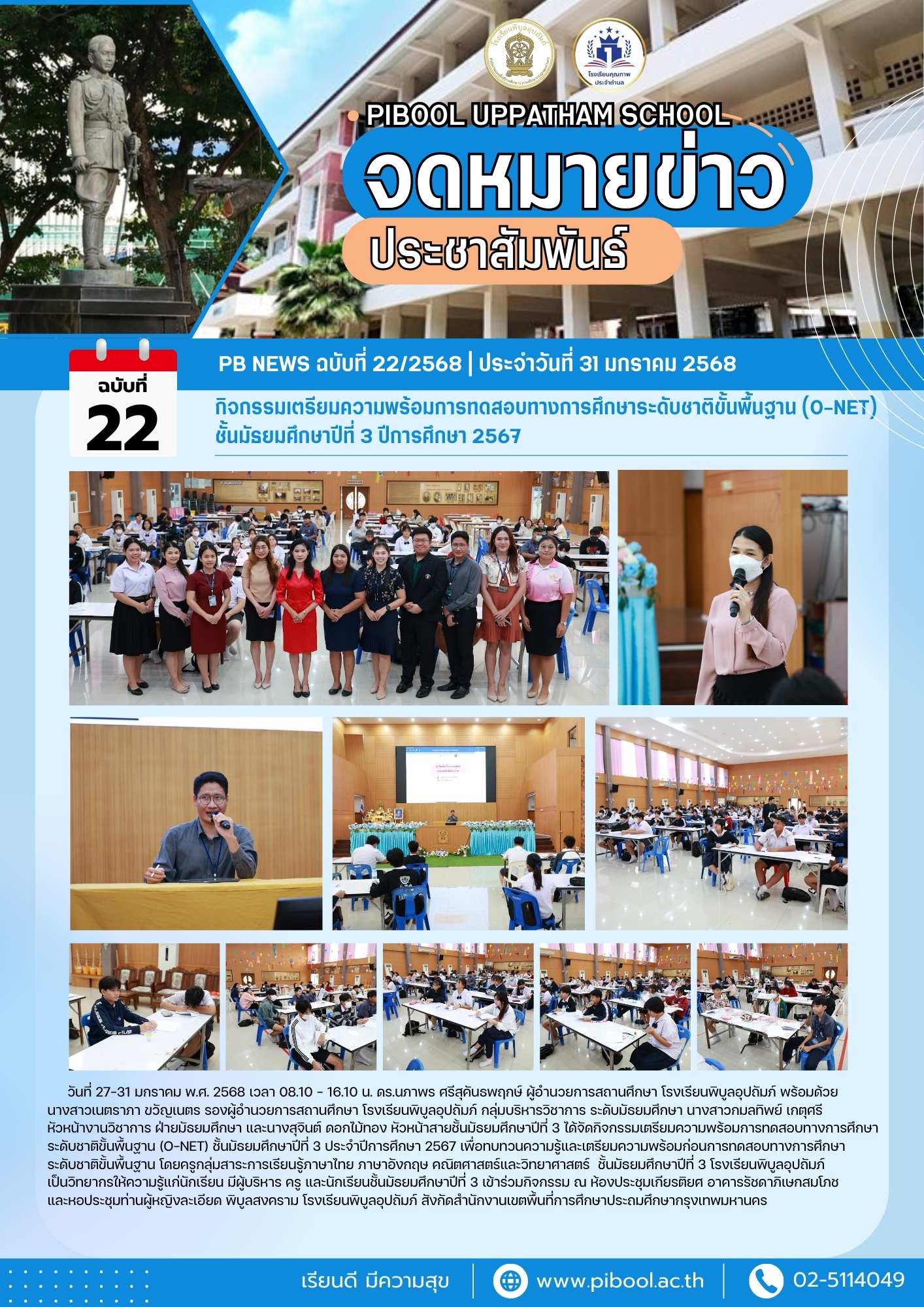 ข่าวประชาสัมพันธ์ ฉบับที่ 22/2568 กิจกรรมเตรียมความพร้อมการทดสอบทางการศึกษาระดับชาติขั้นพื้นฐาน (O-NET) ชั้นมัธยมศึกษาปีที่ 3 ปีการศึกษา 2567