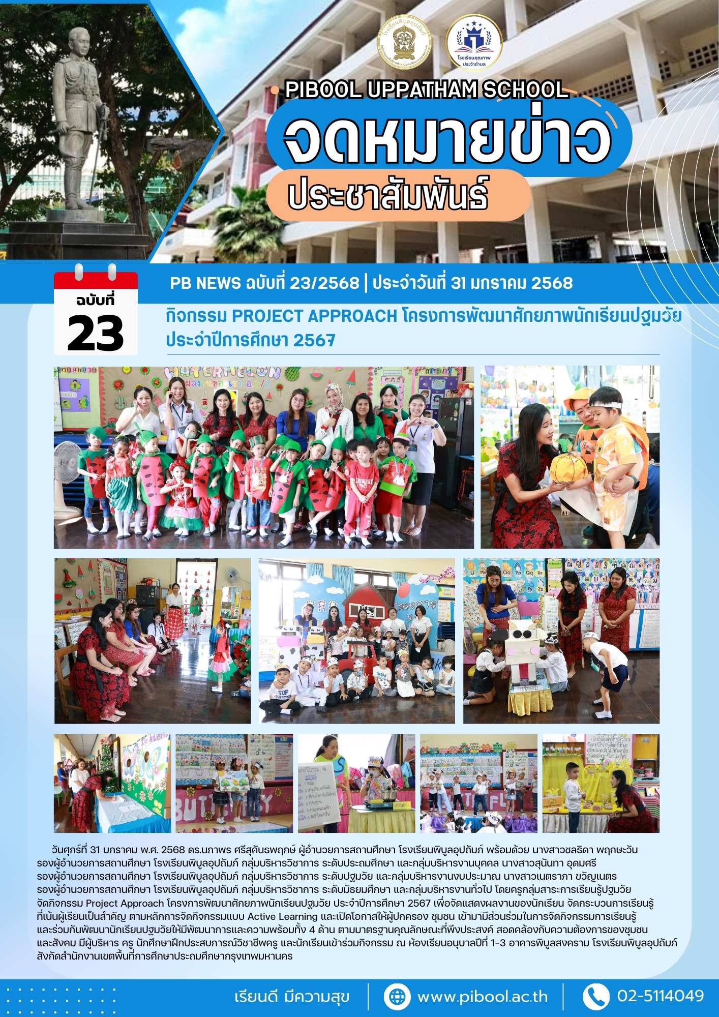 และสังคม มีผู้บริหาร ครู นักศึกษาฝึกประสบการณ์วิชาชีพครู และนักเรียนเข้าร่วมกิจกรรม ณ ห้องเรียนอนุบาลปีที่ 1-3 อาคารพิบูลสงคราม โรงเรียนพิบูลอุปถัมภ์