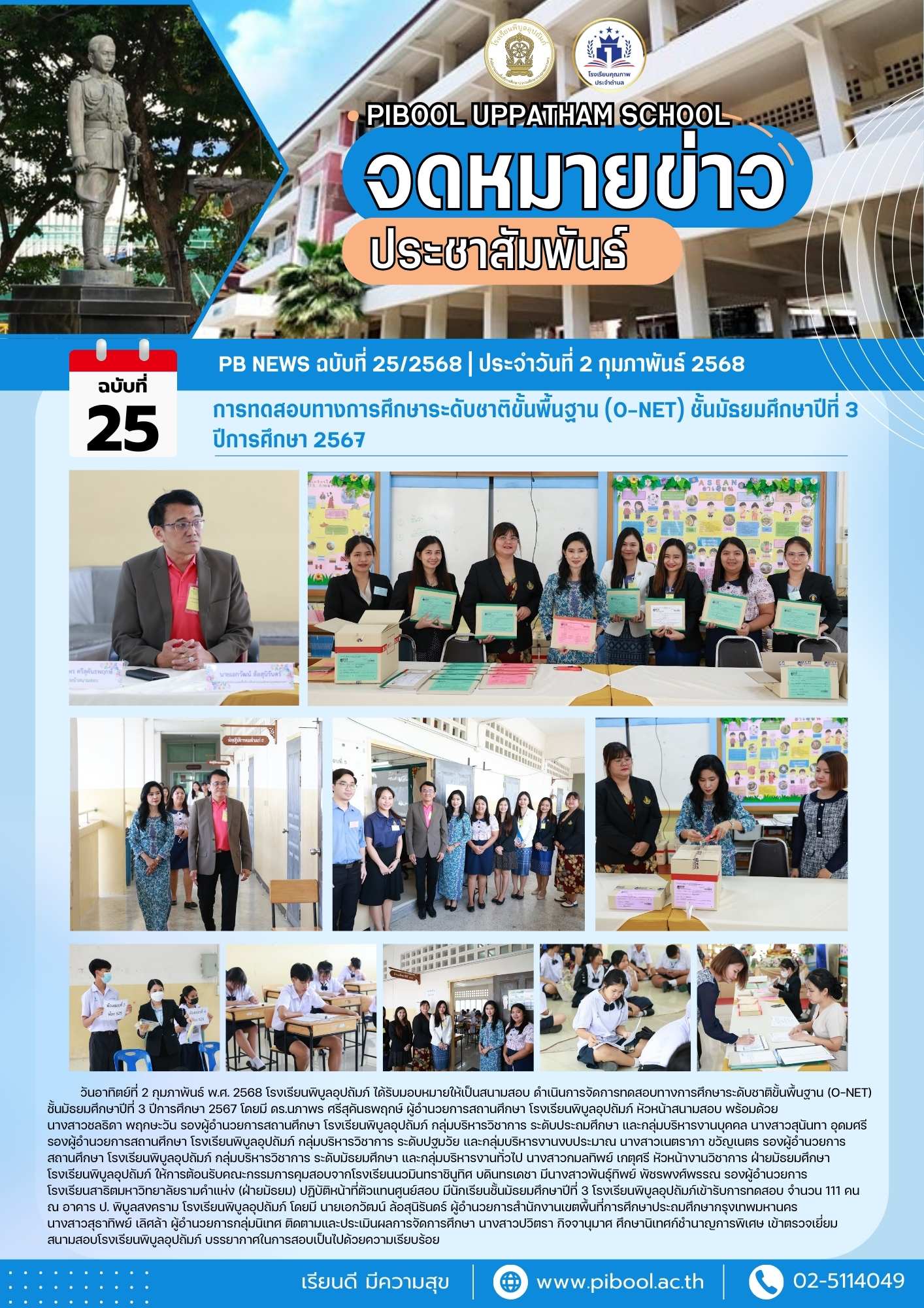 วันอาทิตย์ที่ 2 กุมภาพันธ์ พ.ศ. 2568 โรงเรียนพิบูลอุปถัมภ์ ได้รับมอบหมายให้เป็นสนามสอบ ดำเนินการจัดการทดสอบทางการศึกษาระดับชาติขั้นพื้นฐาน (O-NET) ชั้นมัธยมศึกษาปีที่ 3 ปีการศึกษา 2567 โดยมี ดร.นภาพร ศรีสุคันธพฤกษ์ ผู้อำนวยการสถานศึกษา โรงเรียนพิบูลอุปถัมภ์ หัวหน้าสนามสอบ พร้อมด้วย