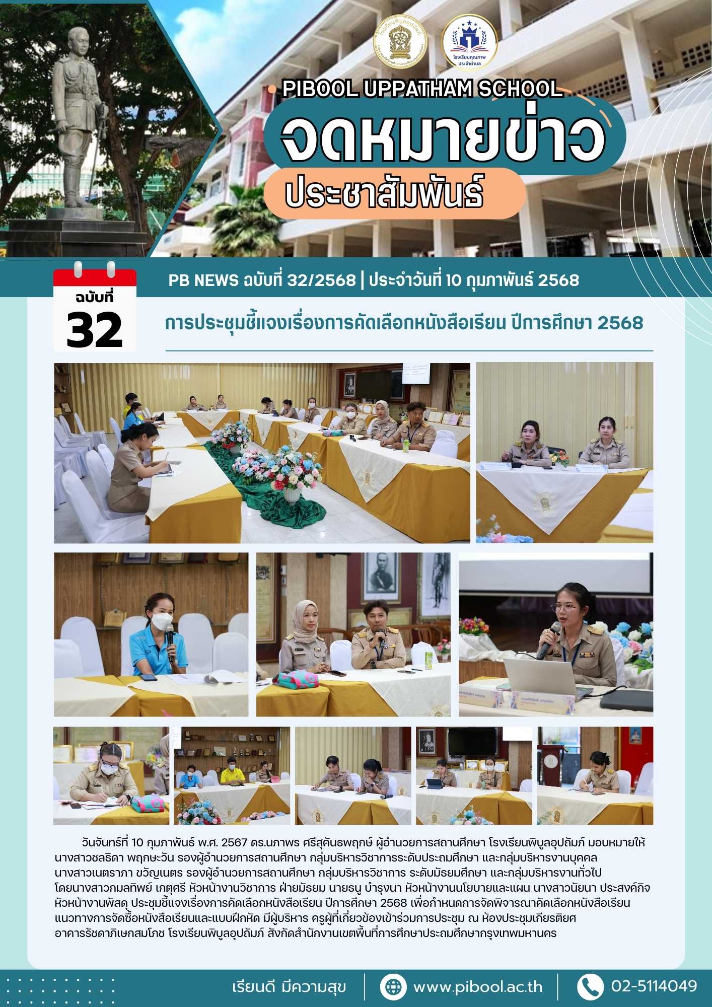 ข่าวประชาสัมพันธ์ ฉบับที่ 32/2568 การประชุมชี้แจงเรื่องการคัดเลือกหนังสือเรียน ปีการศึกษา 2568