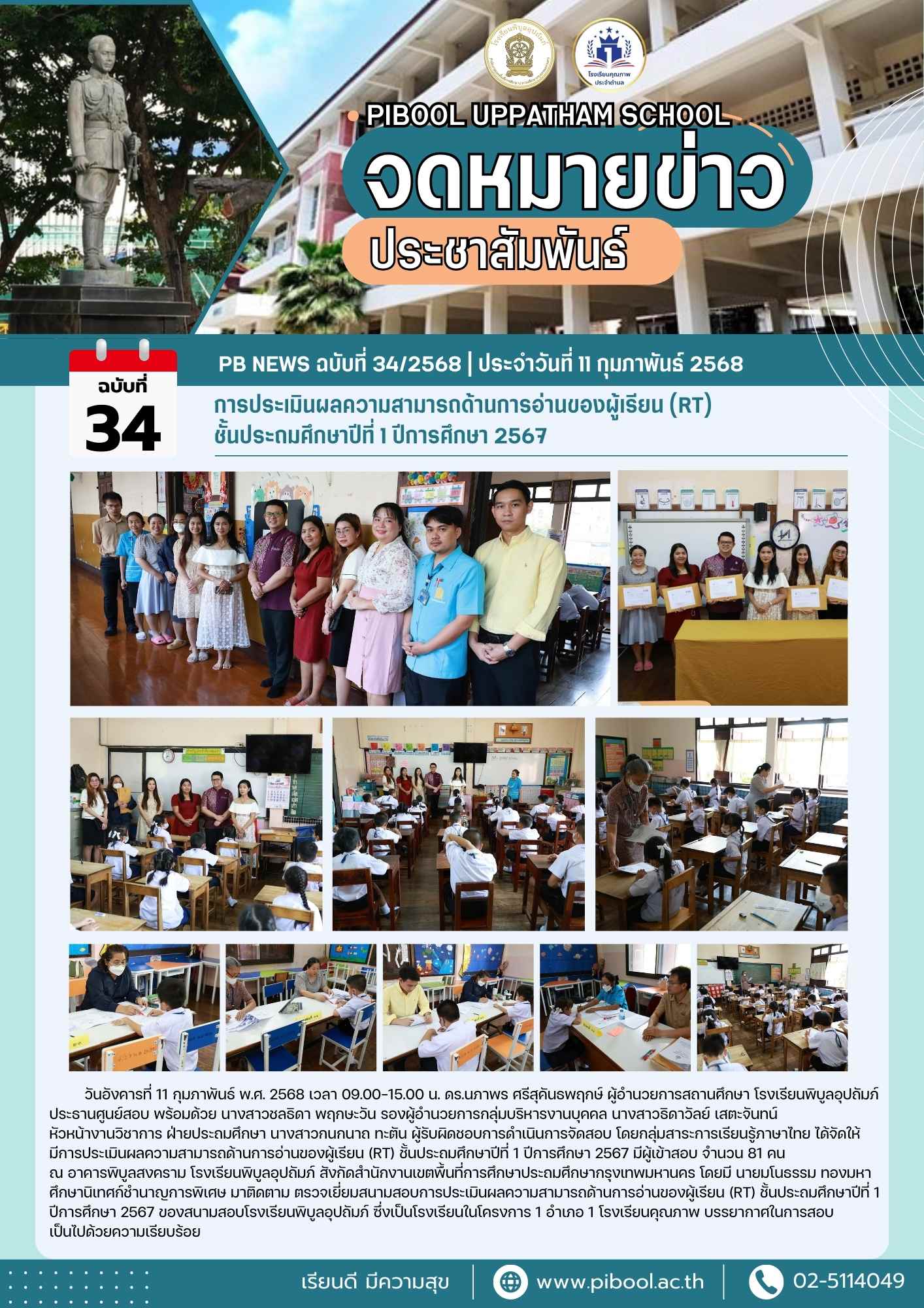 ข่าวประชาสัมพันธ์ ฉบับที่ 34/2568 การประเมินผลความสามารถด้านการอ่านของผู้เรียน (RT) ชั้นประถมศึกษาปีที่ 1 ปีการศึกษา 2567