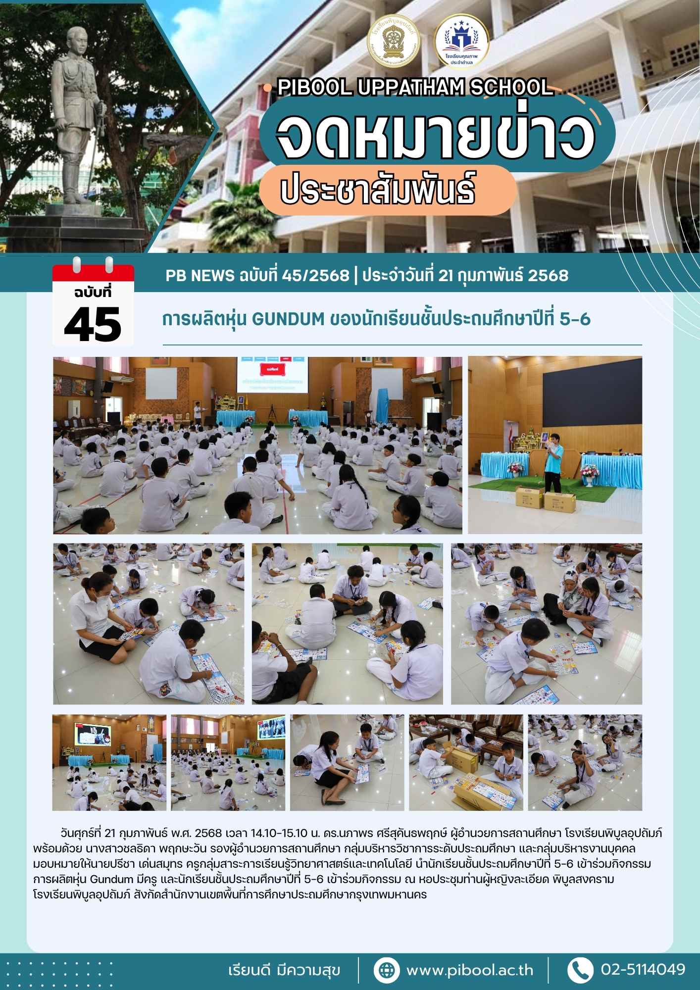ข่าวประชาสัมพันธ์ ฉบับที่ 45/2568 การผลิตหุ่น Gundum ของนักเรียนชั้นประถมศึกษาปีที่ 5-6