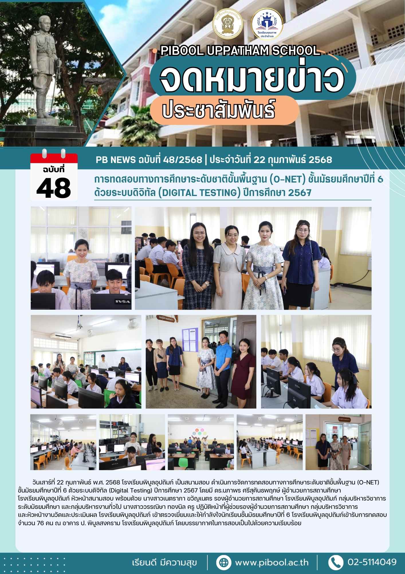 ข่าวประชาสัมพันธ์ ฉบับที่ 48/2568 การทดสอบทางการศึกษาระดับชาติขั้นพื้นฐาน (O-NET) ชั้นมัธยมศึกษาปีที่ 6 ด้วยระบบดิจิทัล (Digital Testing) ปีการศึกษา 2567