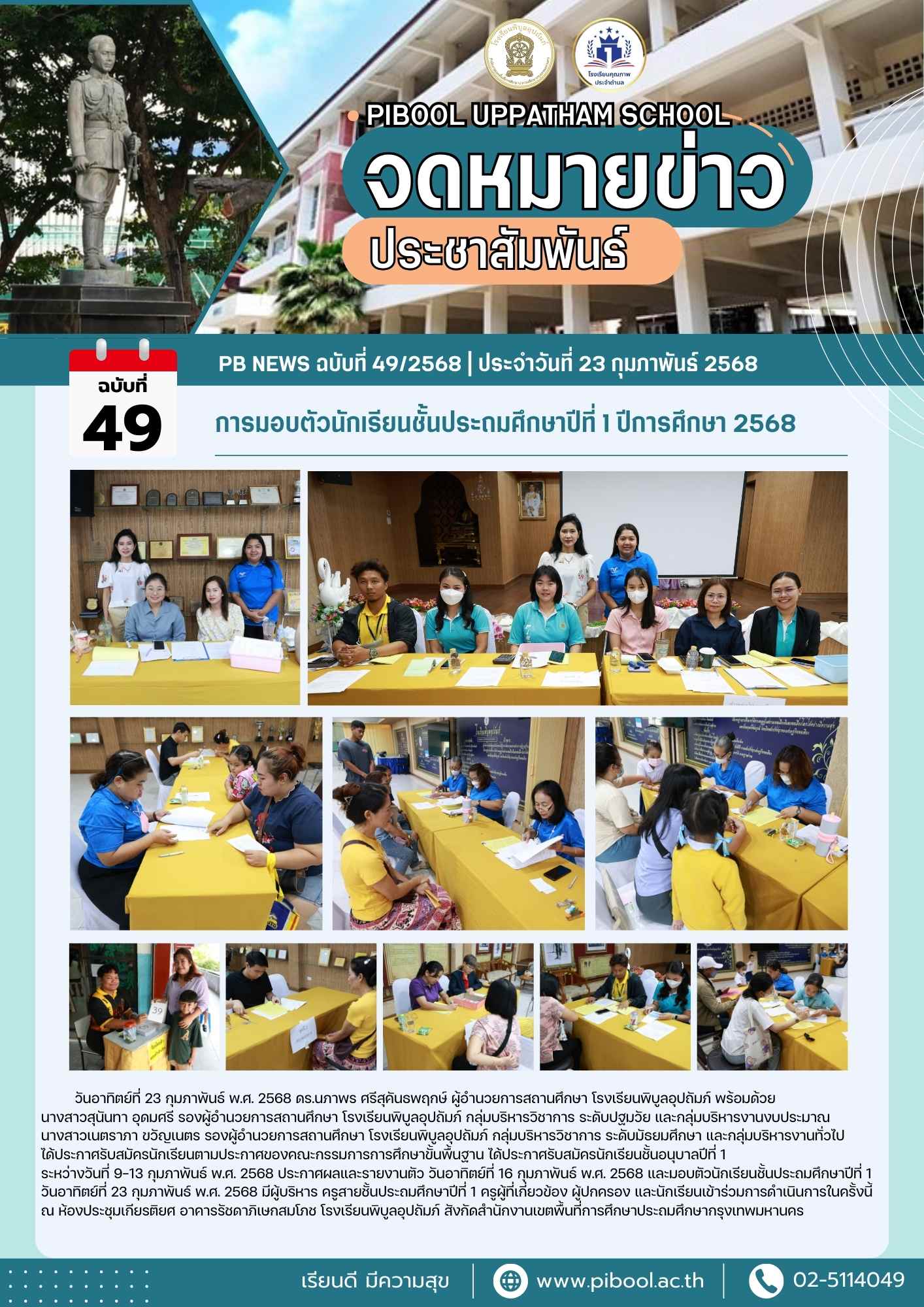 ข่าวประชาสัมพันธ์ ฉบับที่ 49/2568 การมอบตัวนักเรียนชั้นประถมศึกษาปีที่ 1 ปีการศึกษา 2568