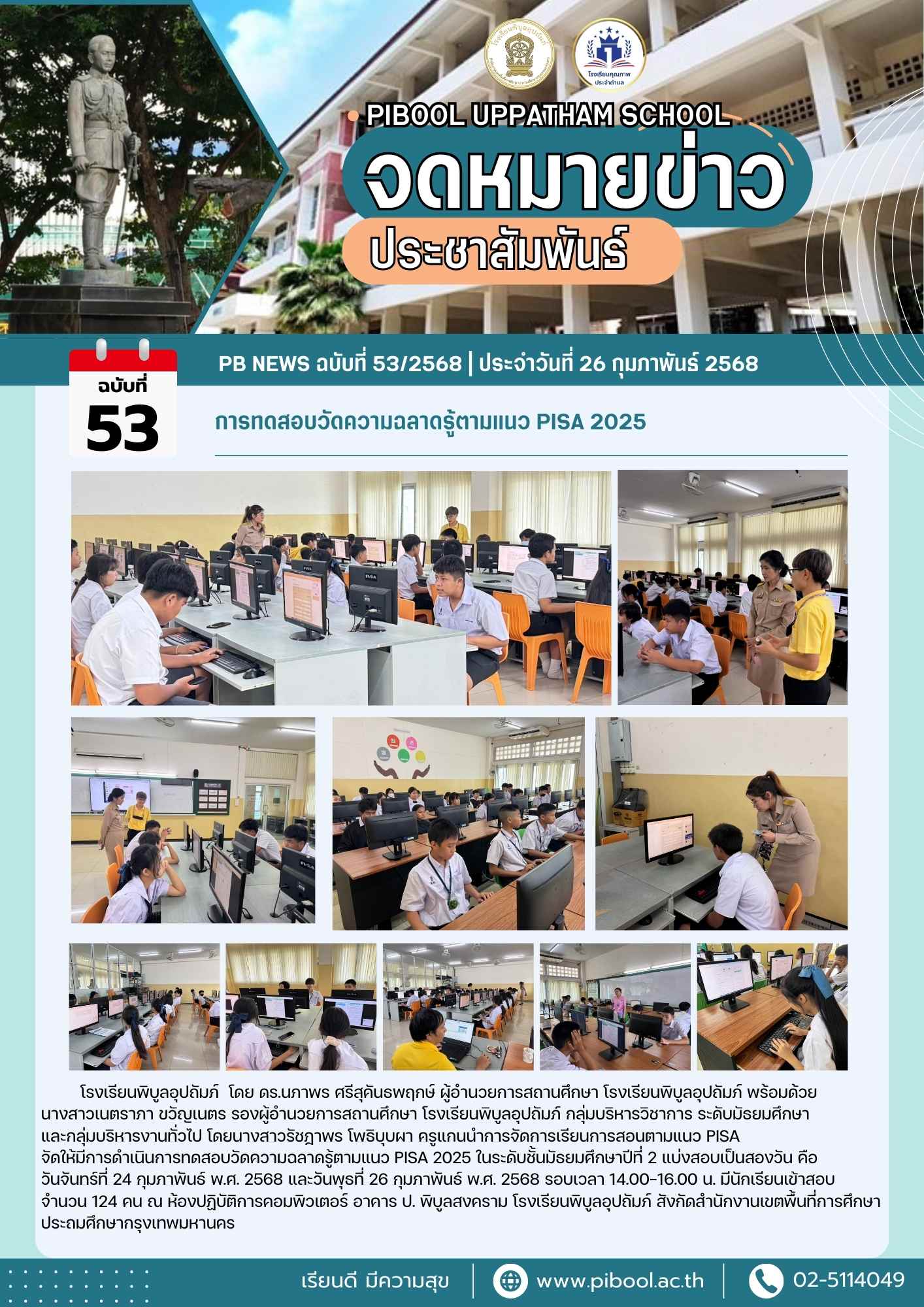 ข่าวประชาสัมพันธ์ ฉบับที่ 53/2568 การทดสอบวัดความฉลาดรู้ตามแนว PISA 2025