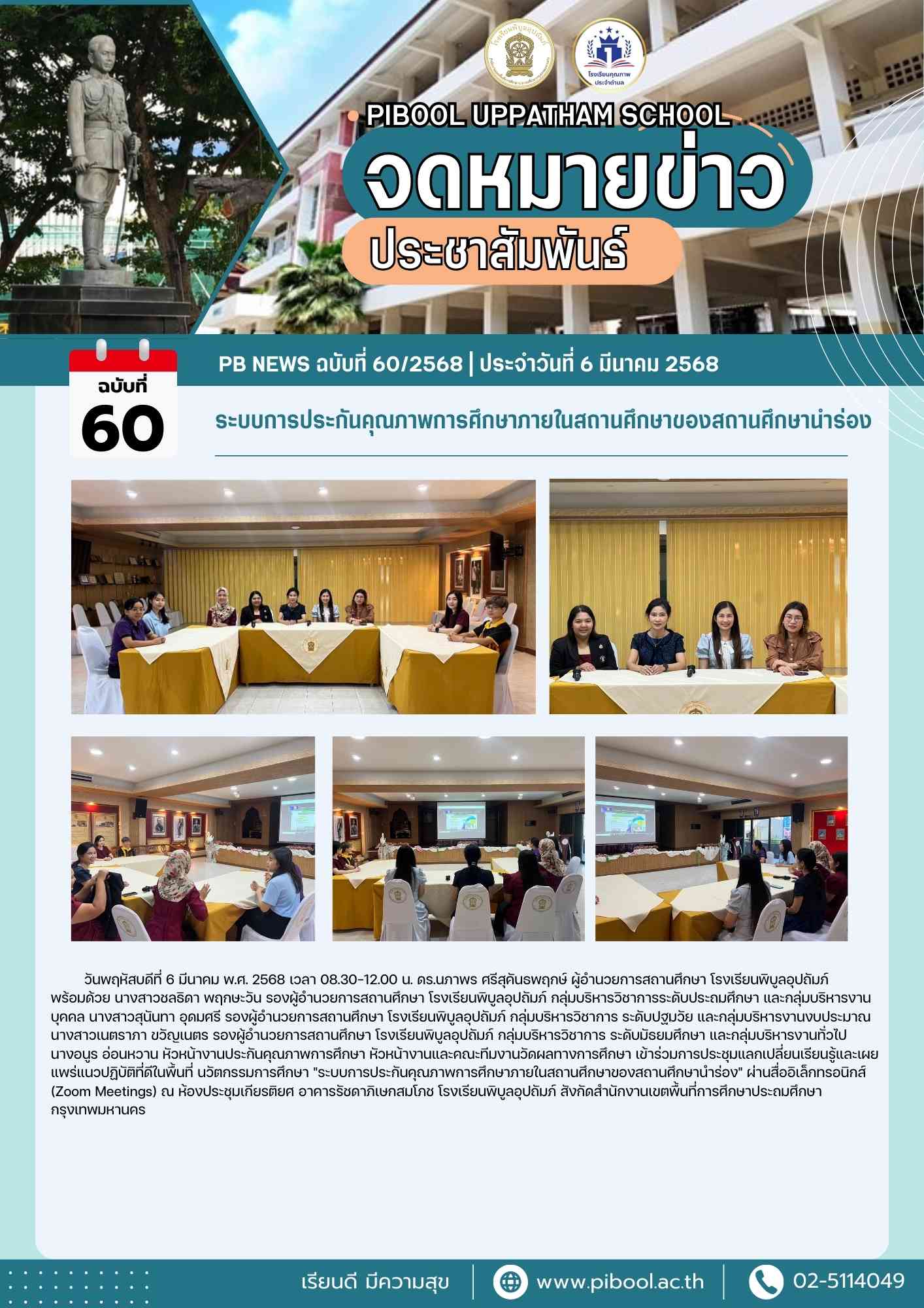 ข่าวประชาสัมพันธ์ ฉบับที่ 60/2568 ระบบการประกันคุณภาพการศึกษาภายในสถานศึกษาของสถานศึกษานำร่อง