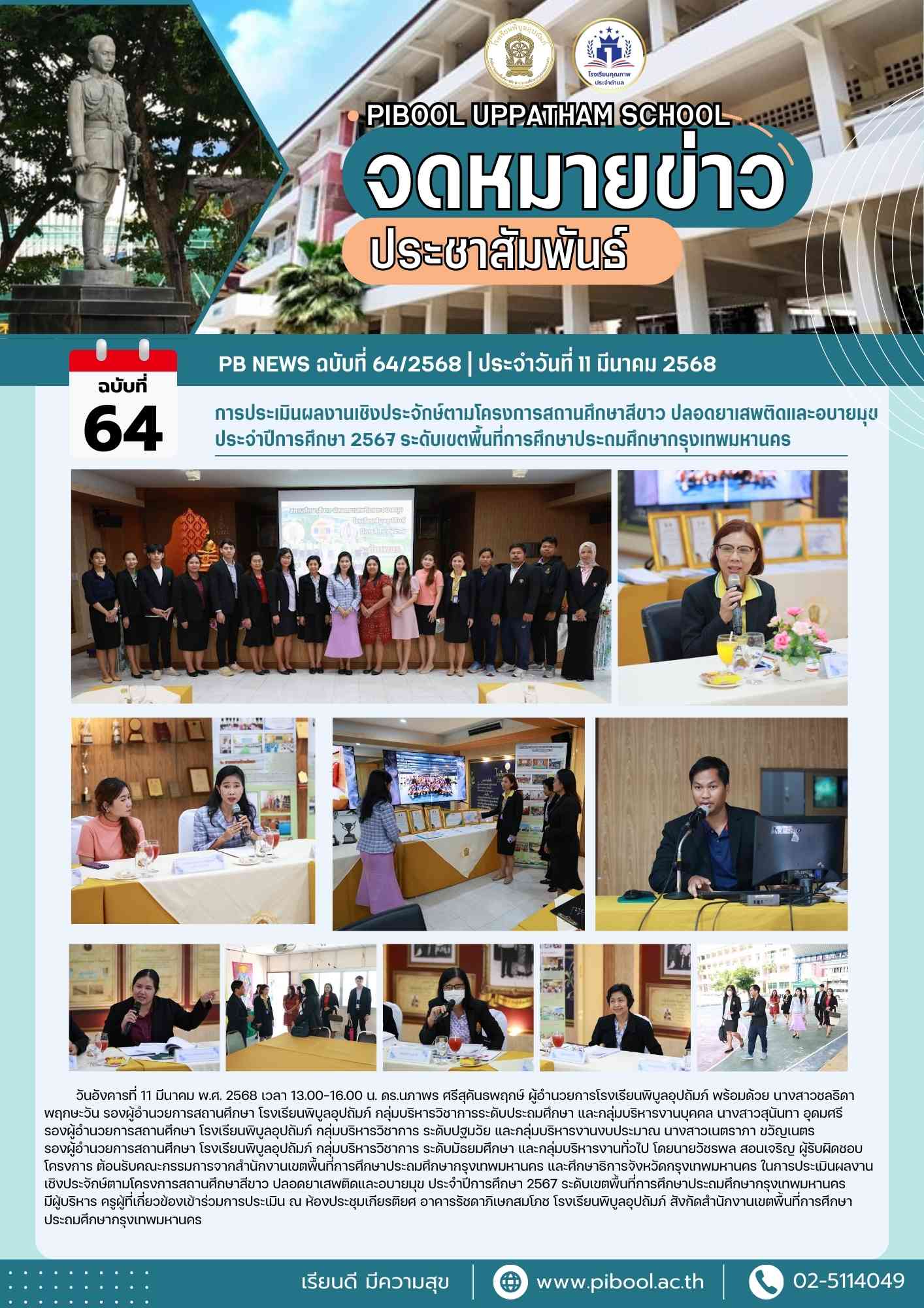 ข่าวประชาสัมพันธ์ ฉบับที่ 64/2568 การประเมินผลงานเชิงประจักษ์ตามโครงการสถานศึกษาสีขาว ปลอดยาเสพติดและอบายมุข ประจำปีการศึกษา 2567 ระดับเขตพื้นที่การศึกษาประถมศึกษากรุงเทพมหานคร