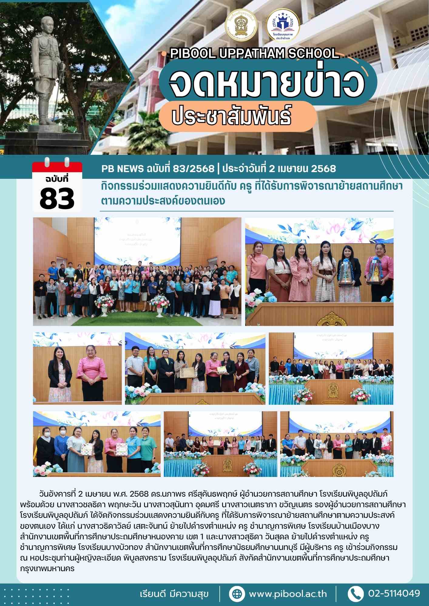 ข่าวประชาสัมพันธ์ ฉบับที่ 83/2568 กิจกรรมร่วมแสดงความยินดีกับ ครู ที่ได้รับการพิจารณาย้ายสถานศึกษาตามความประสงค์ของตนเอง