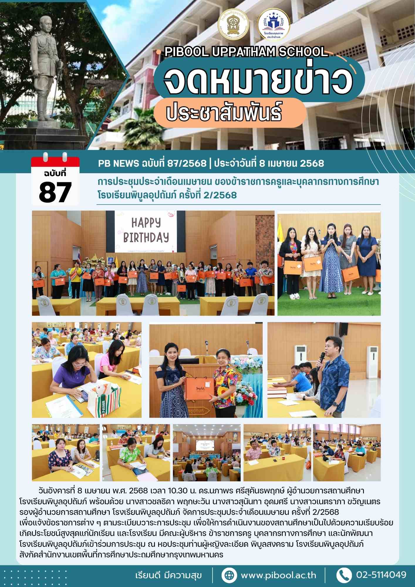ข่าวประชาสัมพันธ์ ฉบับที่ 87/2568 การประชุมประจำเดือนเมษายน ของข้าราชการครูและบุคลากรทางการศึกษา โรงเรียนพิบูลอุปถัมภ์ ครั้งที่ 2/2568