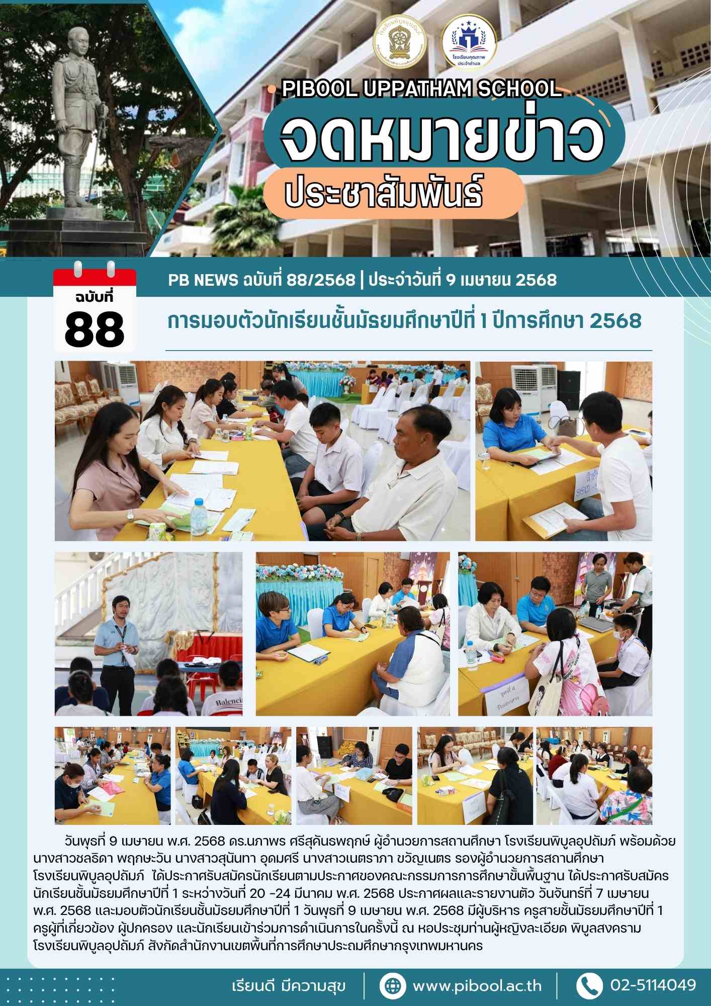 ข่าวประชาสัมพันธ์ ฉบับที่ 88/2568 การมอบตัวนักเรียนชั้นมัธยมศึกษาปีที่ 1 ปีการศึกษา 2568