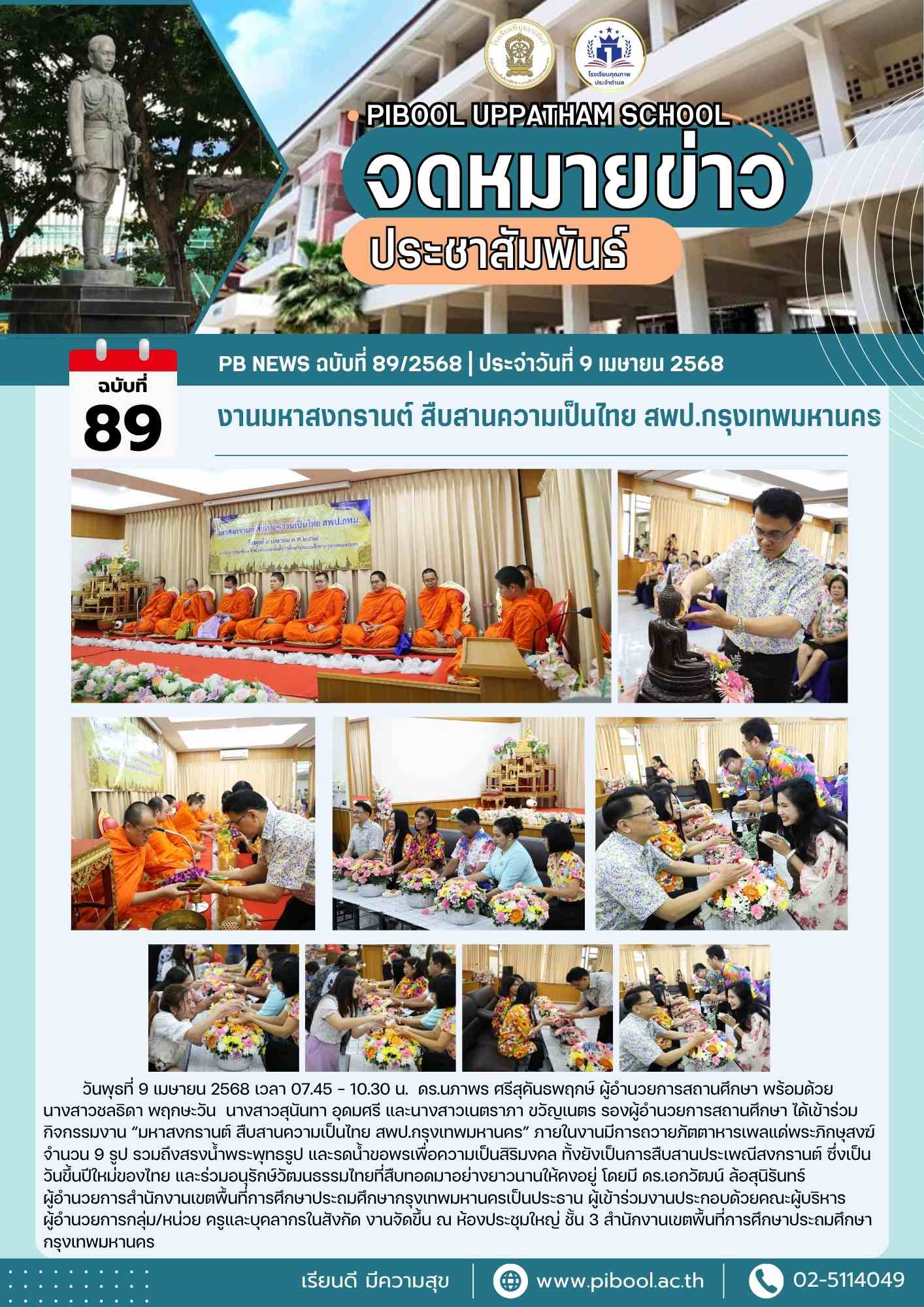 ข่าวประชาสัมพันธ์ ฉบับที่ 89/2568 งานมหาสงกรานต์ สืบสานความเป็นไทย สพป.กรุงเทพมหานคร