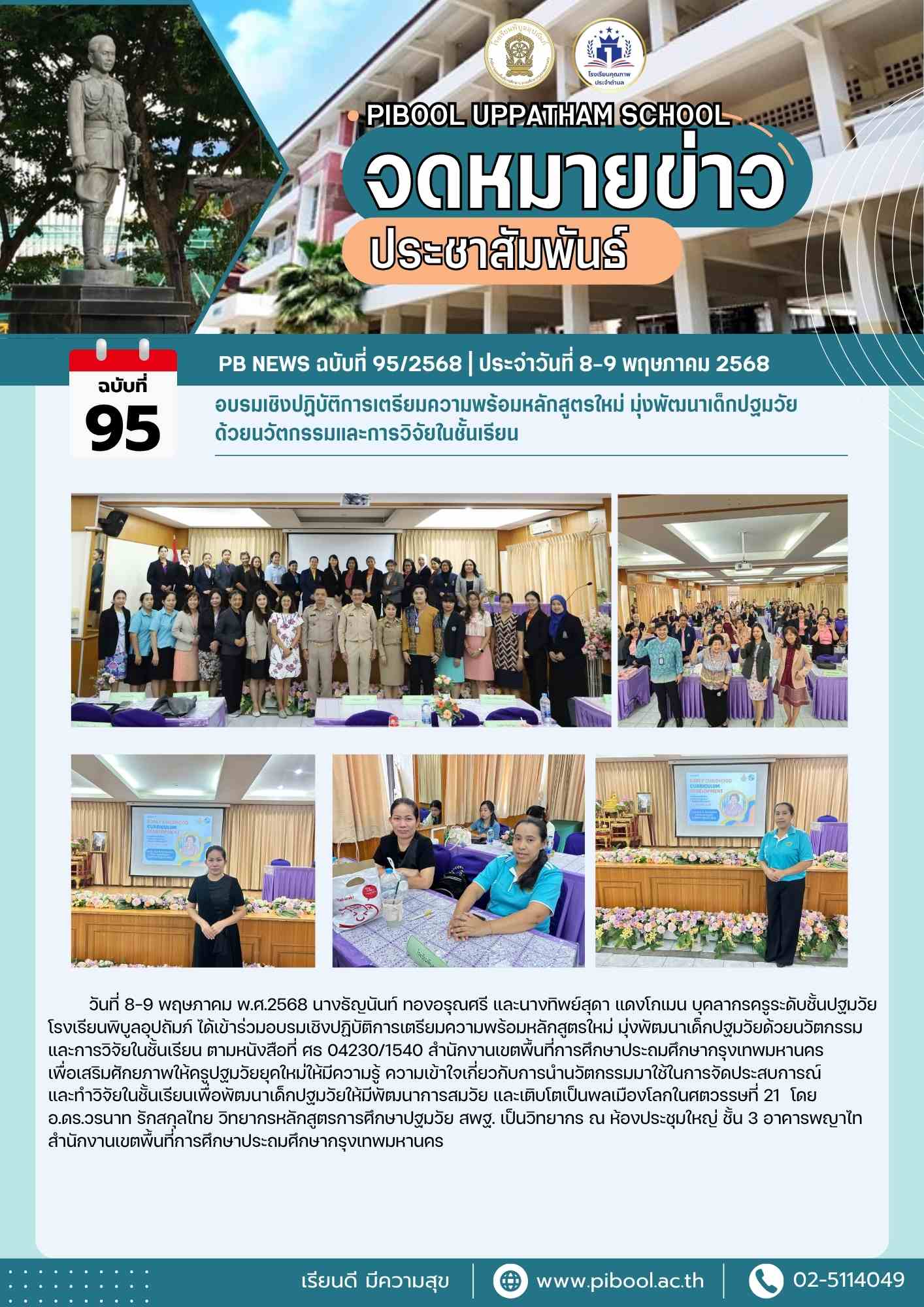 โรงเรียนพิบูลอุปถัมภ์ ได้เข้าร่วมอบรมเชิงปฏิบัติการเตรียมความพร้อมหลักสูตรใหม่ มุ่งพัฒนาเด็กปฐมวัยด้วยนวัตกรรม