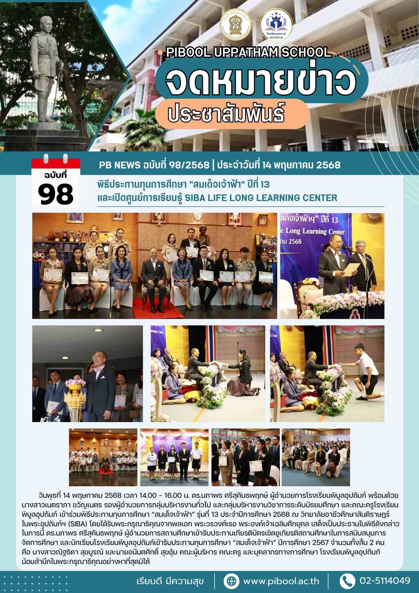 ข่าวประชาสัมพันธ์ ฉบับที่ 98/2568 พิธีประทานทุนการศึกษา "สมเด็จเจ้าฟ้า" ปีที่ 13 และเปิดศูนย์การเรียนรู้ SIBA Life Long Learning Center