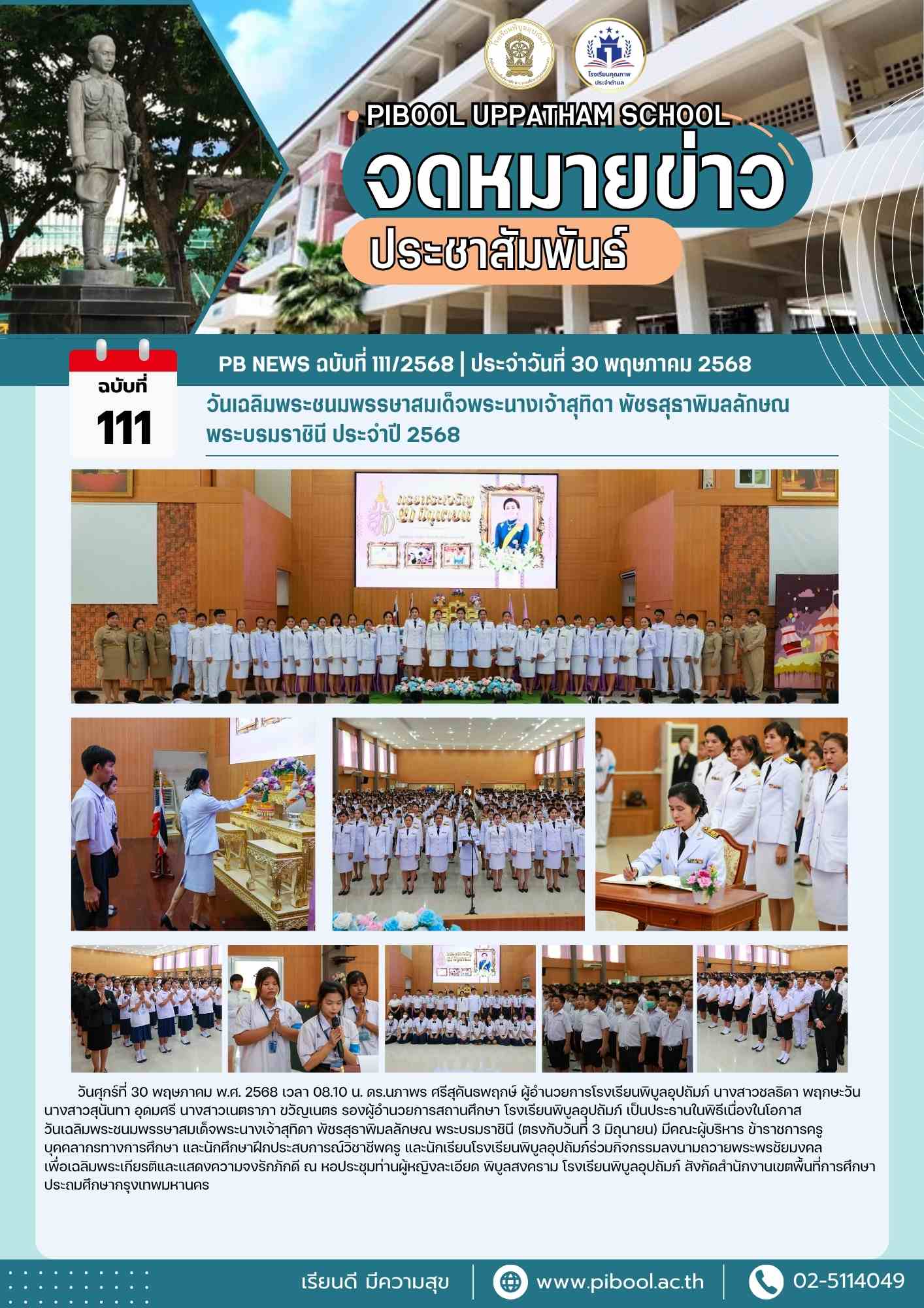 ข่าวประชาสัมพันธ์ ฉบับที่ 111/2568 วันเฉลิมพระชนมพรรษาสมเด็จพระนางเจ้าสุทิดา พัชรสุธาพิมลลักษณ พระบรมราชินี ประจำปี 2568