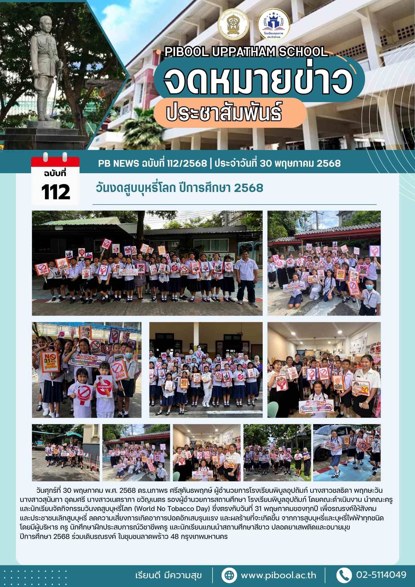 ข่าวประชาสัมพันธ์ ฉบับที่ 112/2568 วันงดสูบบุหรี่โลก ปีการศึกษา 2568