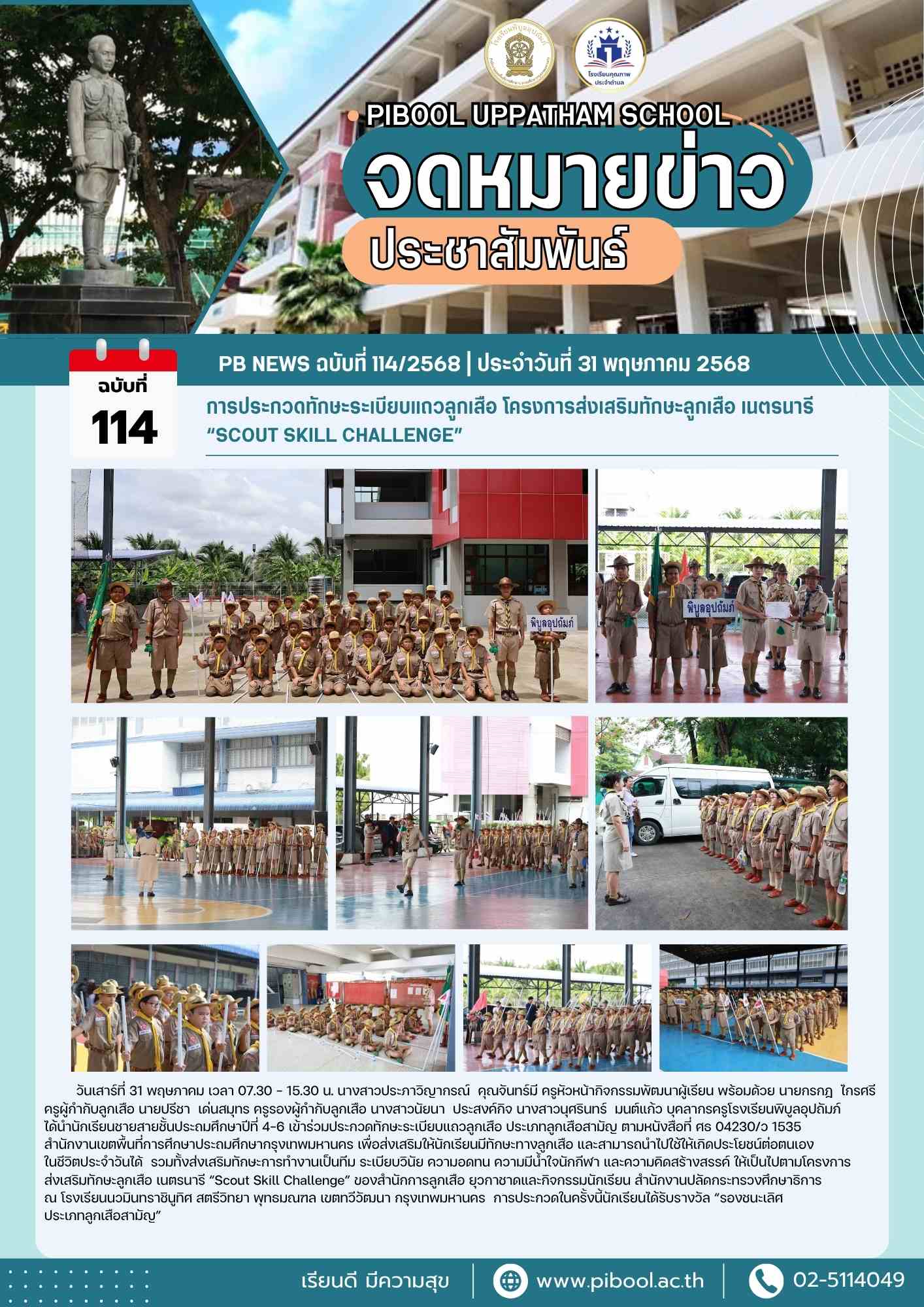 ข่าวประชาสัมพันธ์ ฉบับที่ 114/2568 การประกวดทักษะระเบียบแถวลูกเสือ โครงการส่งเสริมทักษะลูกเสือ เนตรนารี “Scout Skill Challenge”