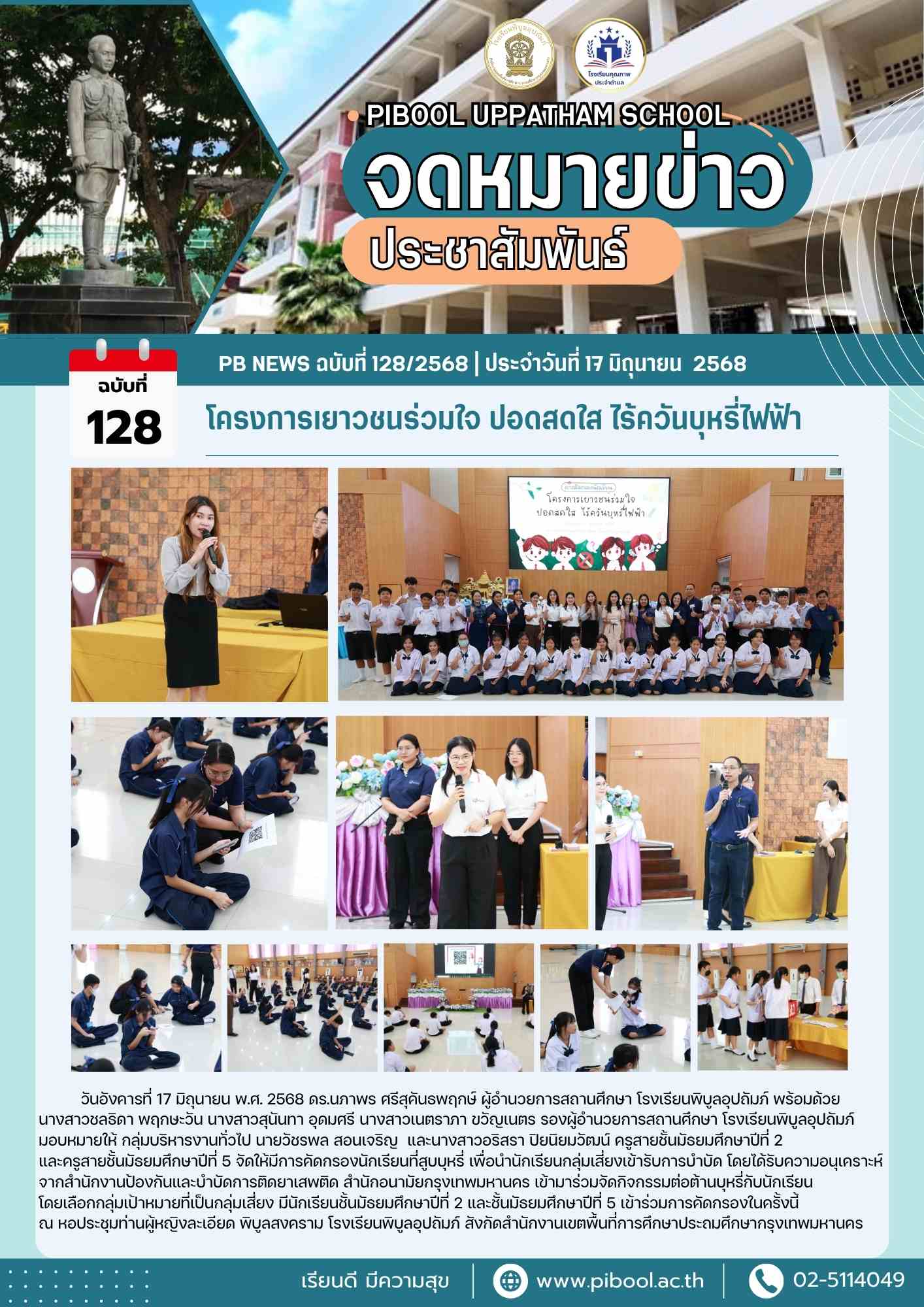 ข่าวประชาสัมพันธ์ ฉบับที่ 128/2568 โครงการเยาวชนร่วมใจ ปอดสดใส ไร้ควันบุหรี่ไฟฟ้า