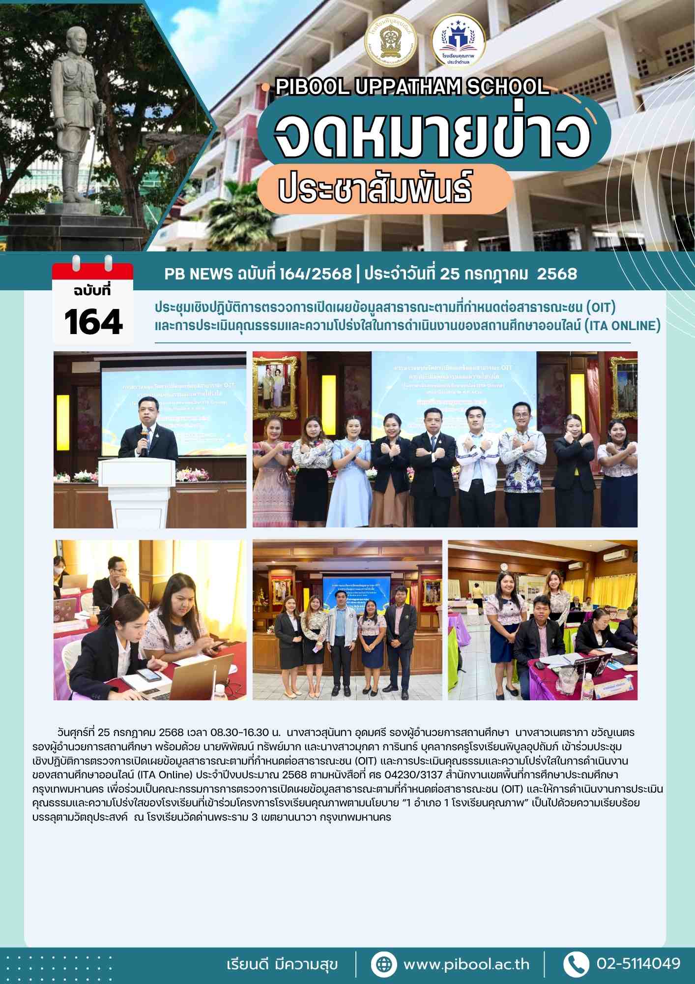 ข่าวประชาสัมพันธ์ ฉบับที่ 164/2568 ประชุมเชิงปฏิบัติการตรวจการเปิดเผยข้อมูลสาธารณะตามที่กำหนดต่อสาธารณะชน (OIT) และการประเมินคุณธรรมและความโปร่งใสในการดำเนินงานของสถานศึกษาออนไลน์ (ITA Online)
