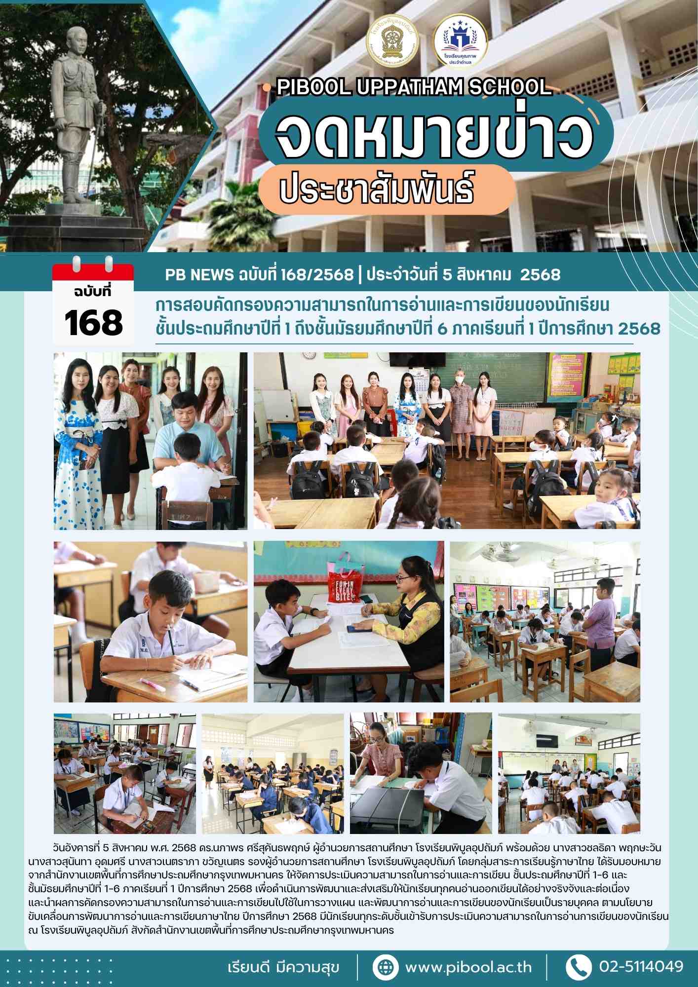 ข่าวประชาสัมพันธ์ ฉบับที่ 168/2568 การสอบคัดกรองความสามารถในการอ่านและการเขียนของนักเรียน ชั้นประถมศึกษาปีที่ 1 ถึงชั้นมัธยมศึกษาปีที่ 6 ภาคเรียนที่ 1 ปีการศึกษา 2568