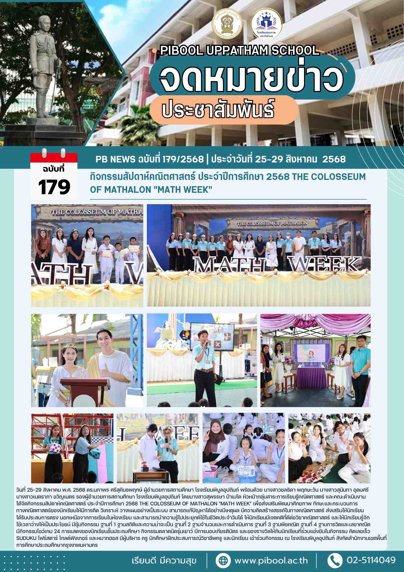 ข่าวประชาสัมพันธ์ ฉบับที่ 179/2568 กิจกรรมสัปดาห์คณิตศาสตร์ ประจำปีการศึกษา 2568 THE COLOSSEUM OF MATHALON "MATH WEEK"