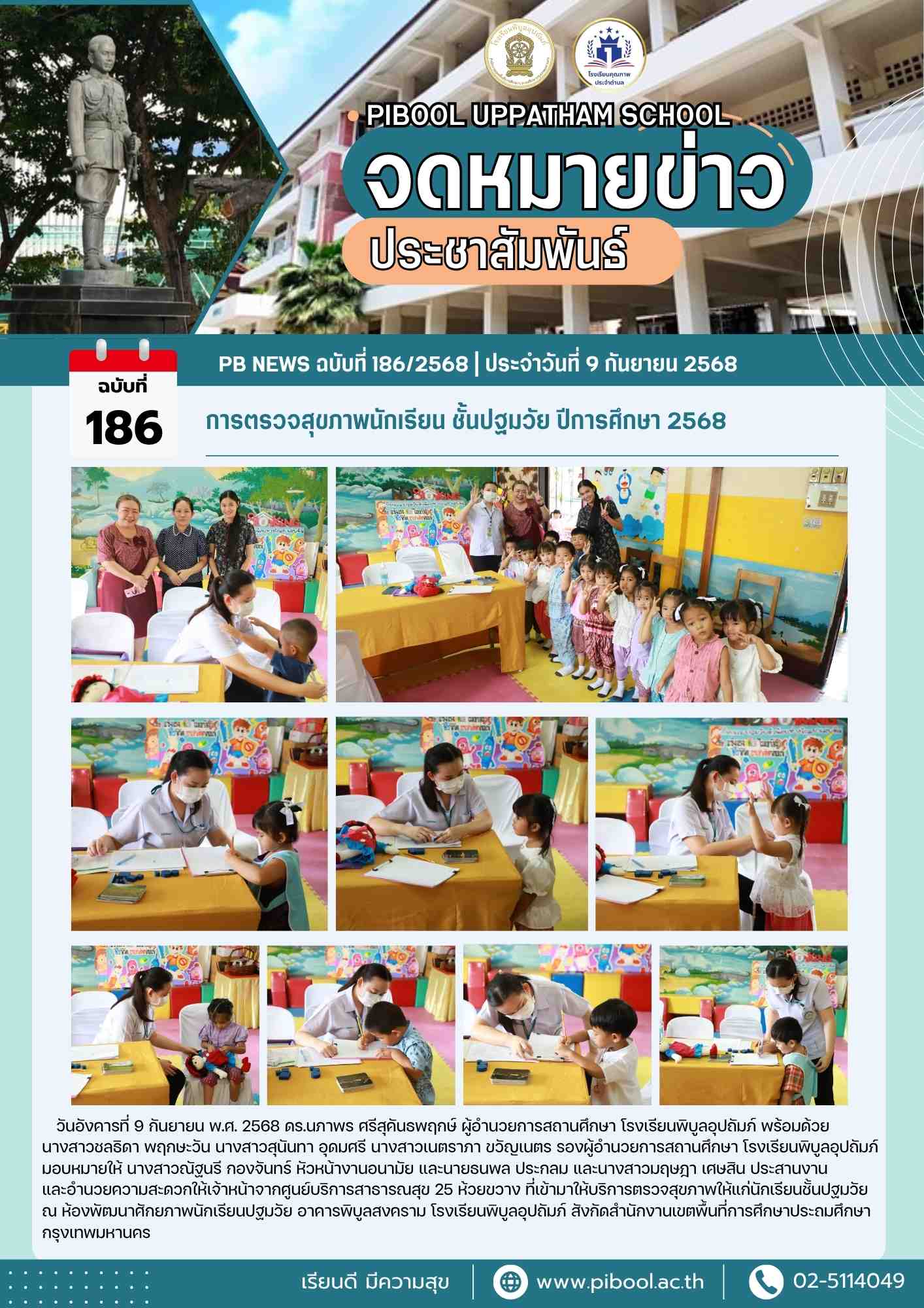 ข่าวประชาสัมพันธ์ ฉบับที่ 186/2568 การตรวจสุขภาพนักเรียน ชั้นปฐมวัย ปีการศึกษา 2568