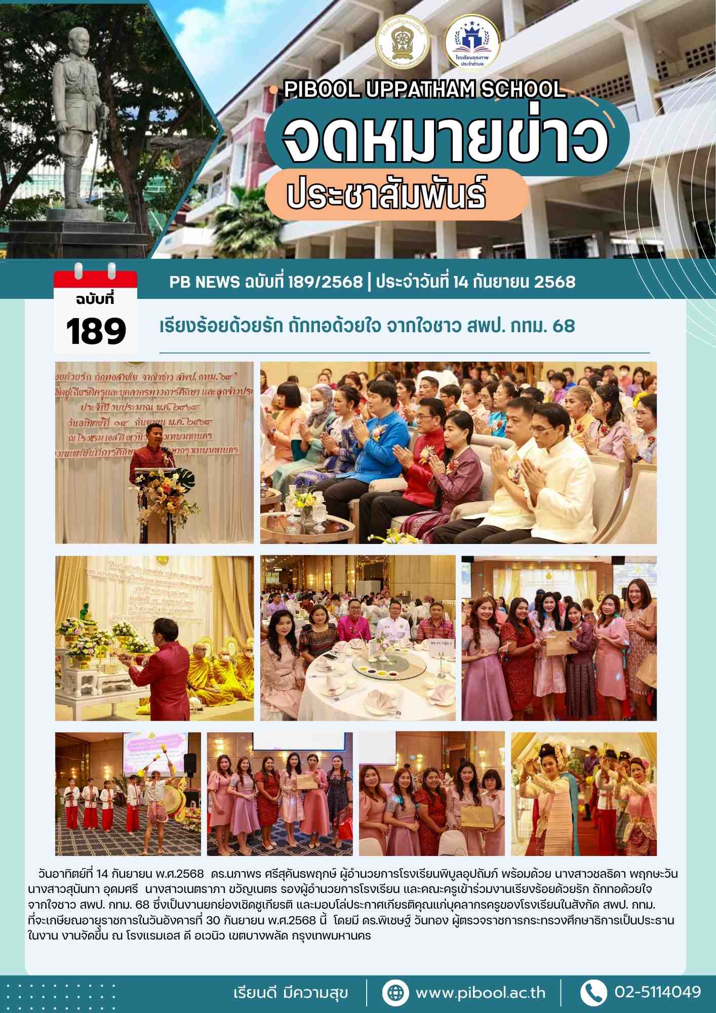 ข่าวประชาสัมพันธ์ ฉบับที่ 189/2568 เรียงร้อยด้วยรัก ถักทอด้วยใจ จากใจชาว สพป. กทม. 68