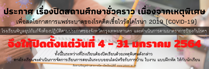 ประกาศ เรื่องปิดสถานศึกษาชั่วคราว เนื่องจากเหตุพิเศษ เพื่อลดโอกาสการแพร่ระบาดของโรคติดเชื้อไวรัสโคโร