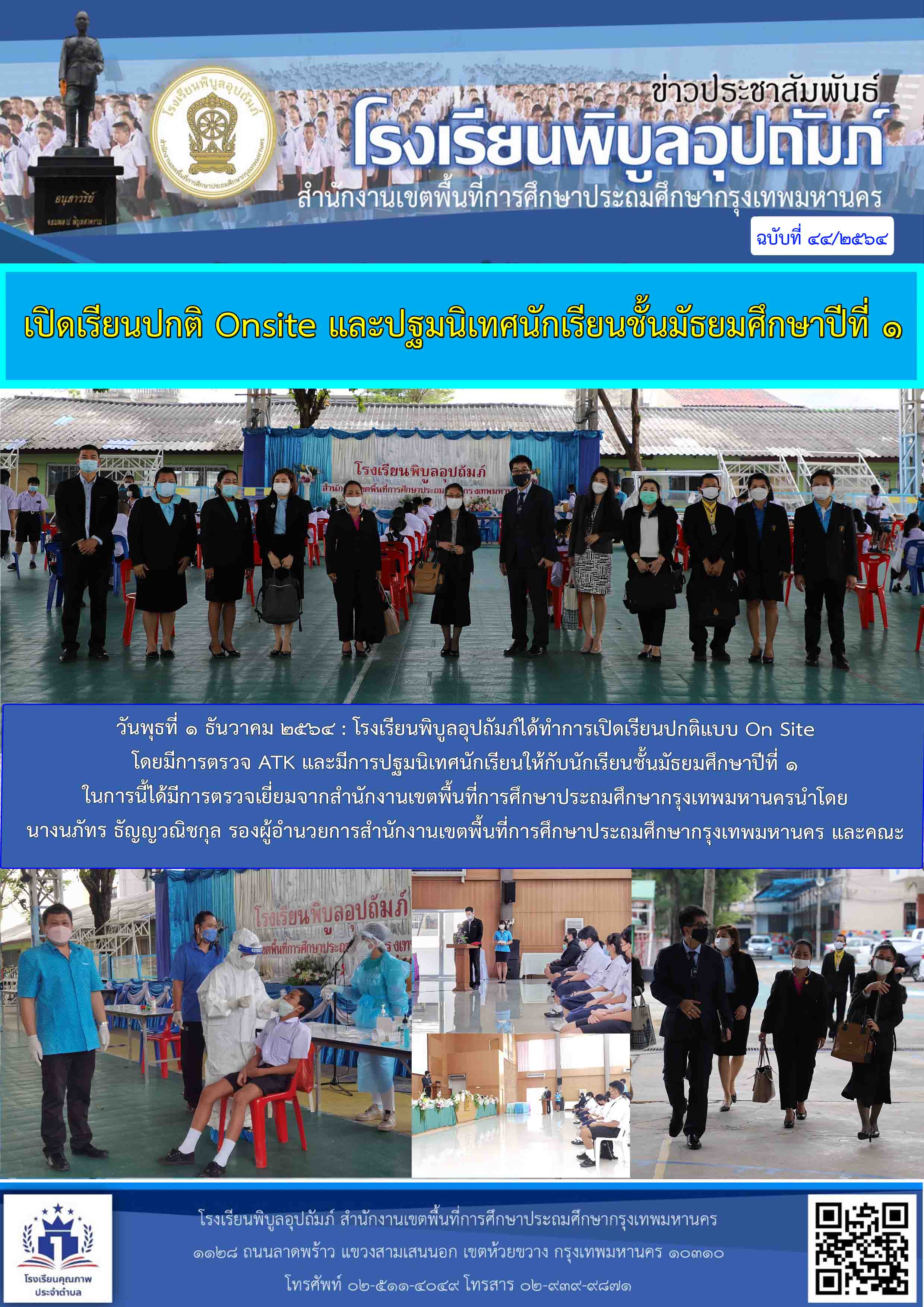 จดหมายข่าวฉบับที่ 44/2564 เปิดเรียนปกติ Onsite และปฐมนิเทศนักเรียนชั้นมัธยมศึกษาปีที่ 1 (1/12/2564)