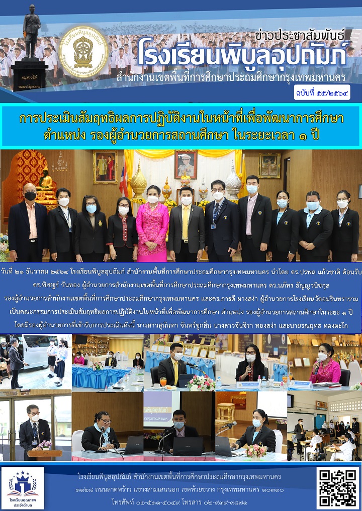 จดหมายข่าวฉบับที่ 55/2564 การประเมินสัมฤทธิผลการปฏิบัติงานในหน้าที่เพื่อพัฒนาการศึกษา ตำแหน่ง รองผู้อำนวยการสถานศึกษา ในระยะเวลา 1 ปี (21/12/2564)