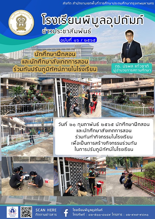 จดหมายข่าวฉบับที่ 16/2565 นักศึกษาฝึกสอน และนักศึกษาสังเกตการสอน ร่วมกันปรับภูมิทัศน์ภายในโรงเรียน (21/02/2565)