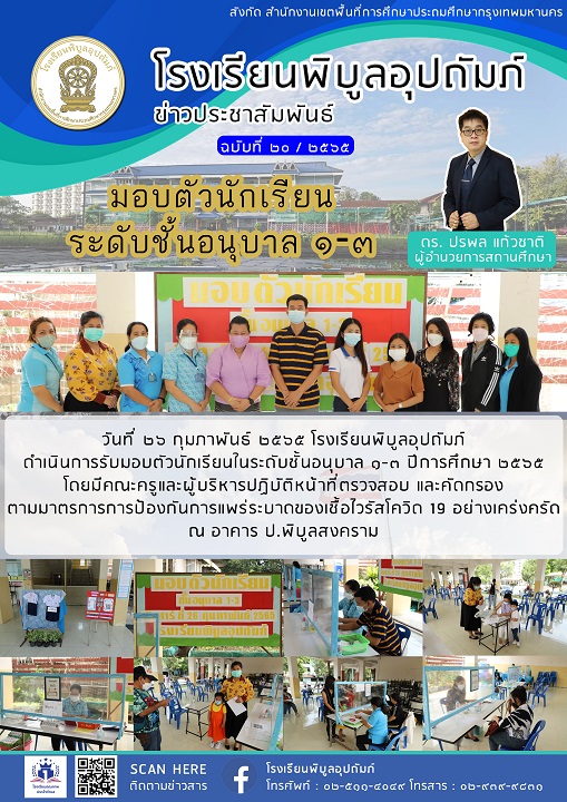 จดหมายข่าวฉบับที่ 20/2565 มอบตัวนักเรียน ระดับชั้นอนุบาล 1-3 (26/02/2565)