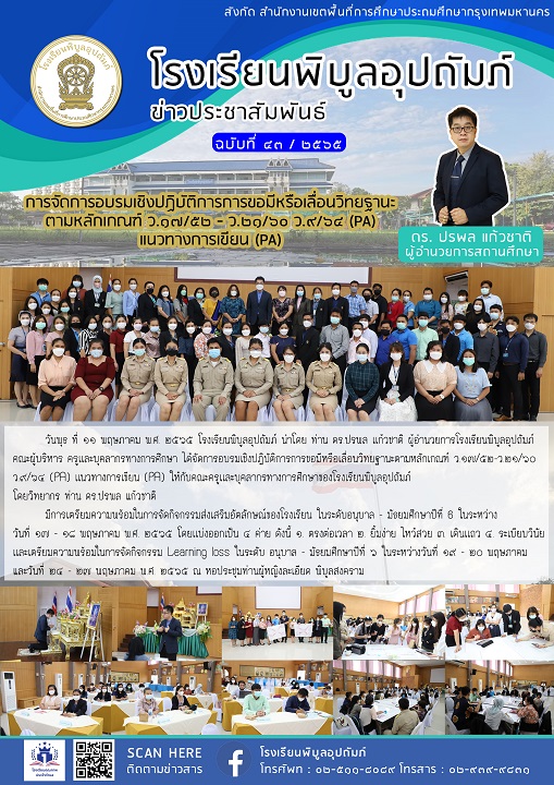 จดหมายข่าวฉบับที่ 43/2565 การจัดการอบรมเชิงปฏิบัติการการขอมีหรือเลื่อนวิทยฐานะ ตามเกณฑ์ ว.17/52 - ว.21/60 ว.9/64 แนวทางการเขียน PA (11/05/2565)
