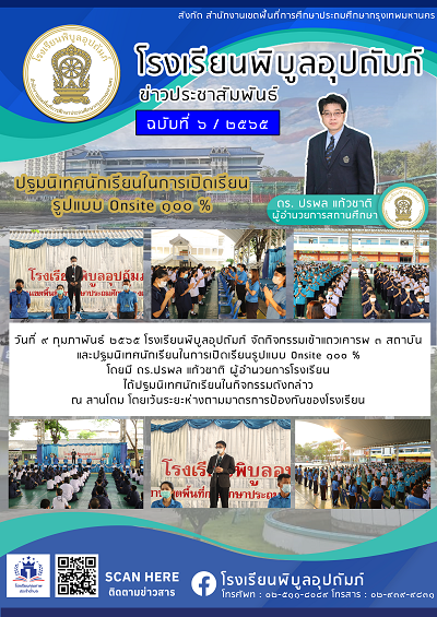 จดหมายข่าวฉบับที่ 6/2565 ปฐมนิเทศนักเรียนในการเปิดเรียน รูปแบบ Onsite 100 %(09/02/2565)