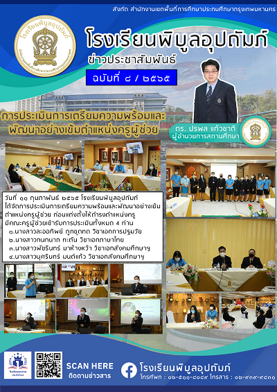 จดหมายข่าวฉบับที่ 8/2565 การประเมินการเตรียมความพร้อมและพัฒนาอย่างเข้มตำแหน่งครูผู้ช่วย (11/02/2565)